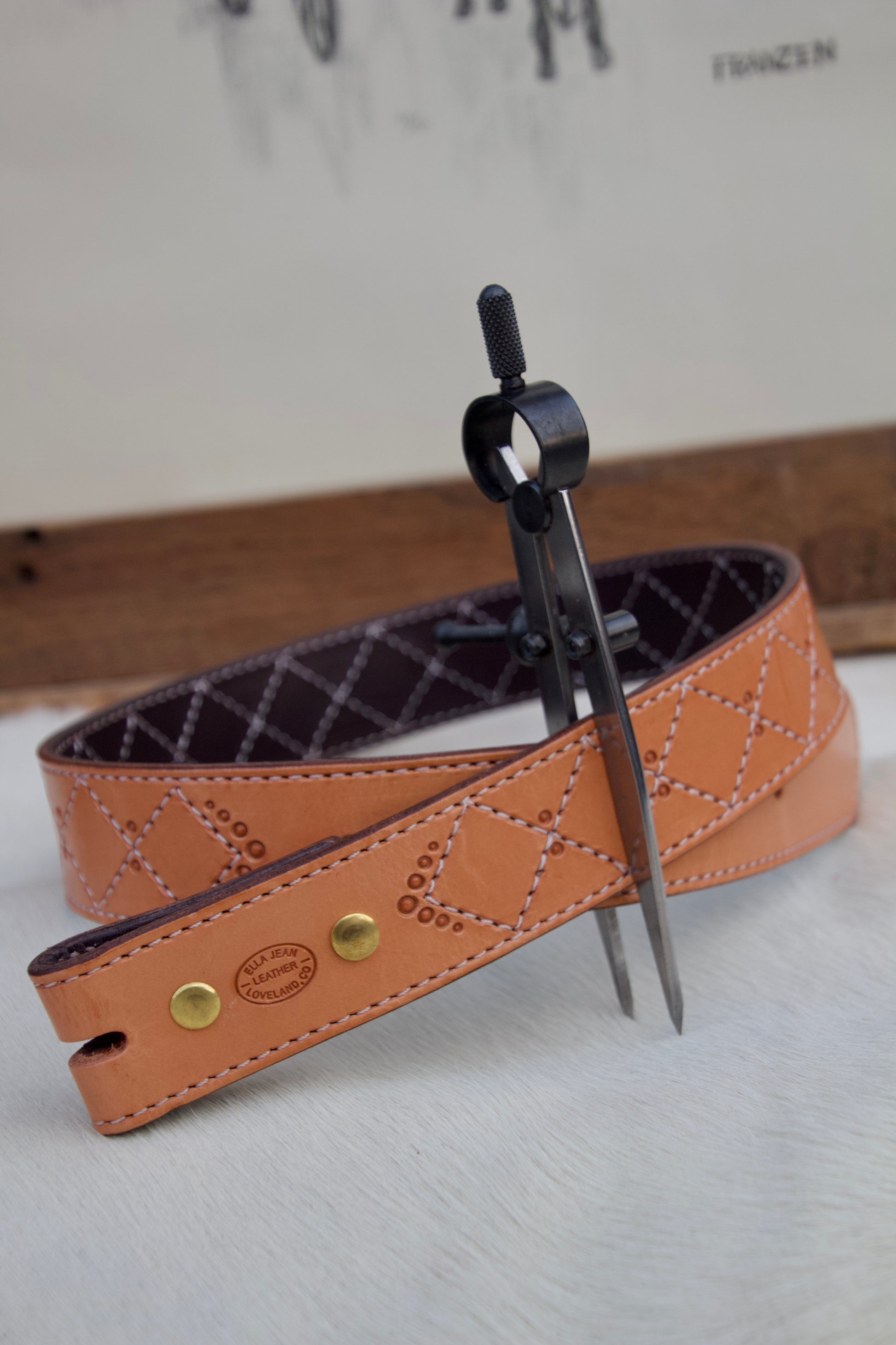 This belt carries a square stitch pattern with some stamping throughout. Lined with English bridle belly leather, this thing sure is a stunner. Give it time and the tan will patina to nice darker shade.